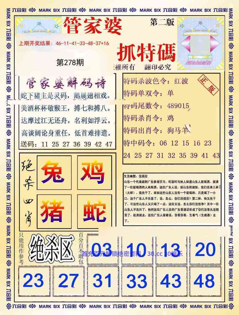 278期:绝杀三肖【牛-鸡-兔】开:虎28准 |